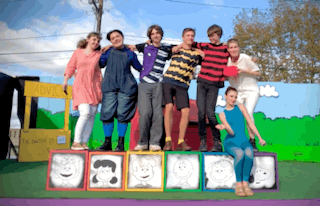 Next up was Charlie Brown. Our small cast of seven was fully vaccinated, so when the weather didn't allow for outdoor rehearsals, we were safely able to rehearse masked inside the studio. We had been hoping to perform that one indoors, but out of an abundance of caution, we once again built a stage in the backyard ala Mickey and Judy.